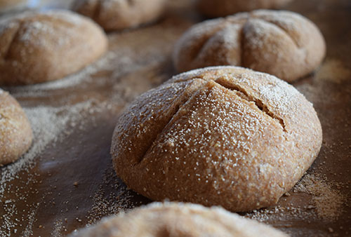 6) Cortar una X en el centro de los panecillos y hornear durante 15 - 20 minutos.